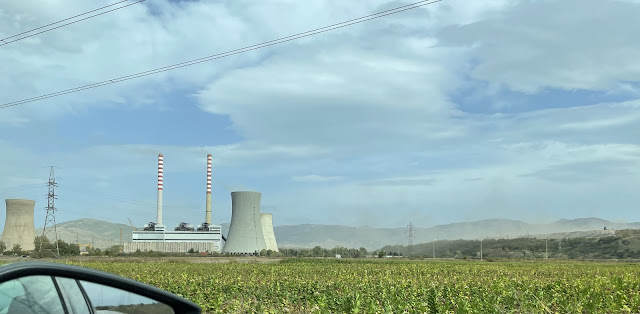 Power plants spewing smoke along with dust from the digging. The power plant in Bitola provides 70% of the electricity in Macedonia. The plant is in Novaci which experiences power outages quite frequently.